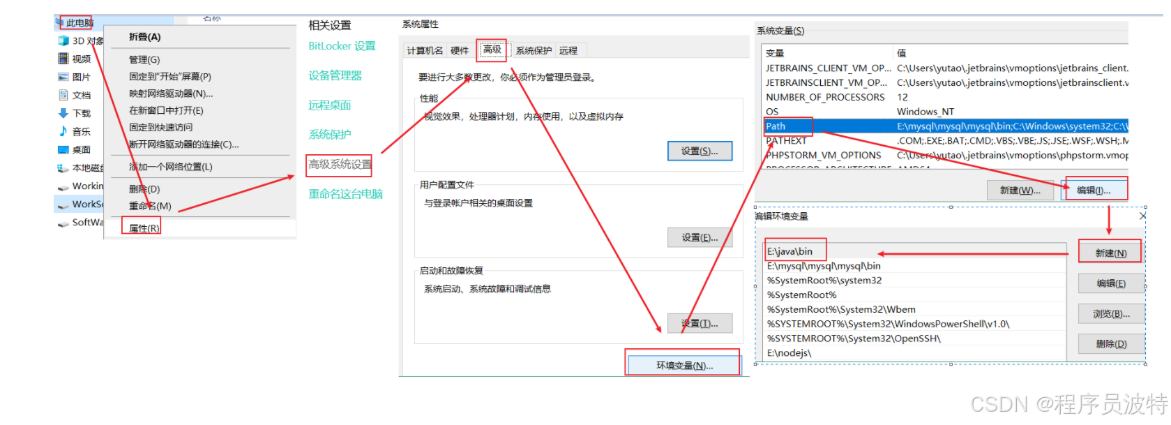 jdk安装之后,自带环境变量配置->javapath(可以删除)->推荐使用JAVA_HOME 可能出现的问题:电脑重启之后,环境变量失效了 1.解决问题1:点到环境变量中,啥都不要做,直接点一下确定 2.解决问题2:直接将bin路径粘进去 当然,后面学了idea之后,不会出现这种问题了