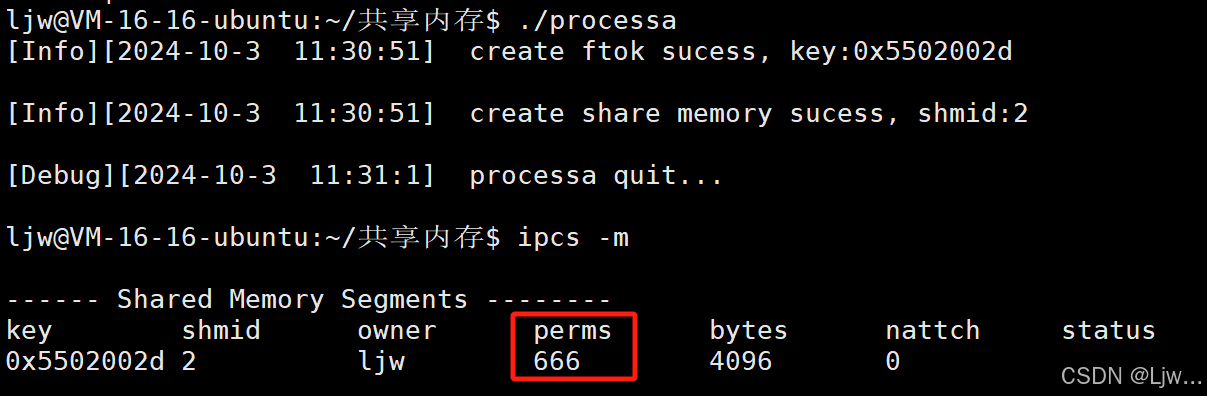 创建成功了,就Info,返回共享内存的标识符