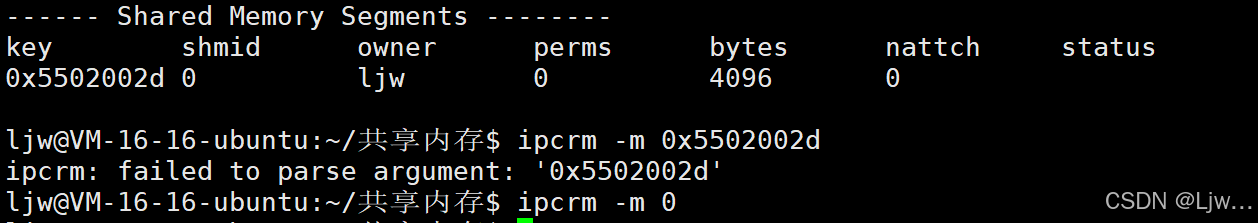 ipcs -m 查看共享内存的资源,进程退了还存在