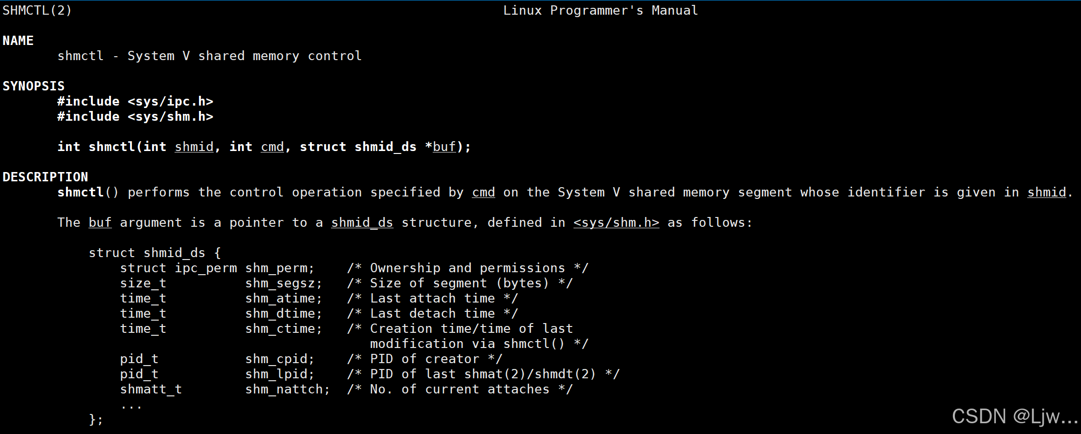 第一个:参数就是上面获取的shmid,