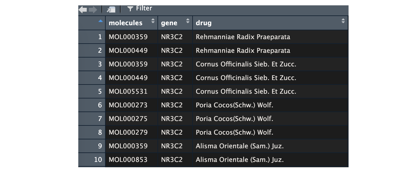 以此类推...可以通过药物名直接访问相应的数据框。例如,如果想访问 Rehmanniae Radix Praeparata的数据框: