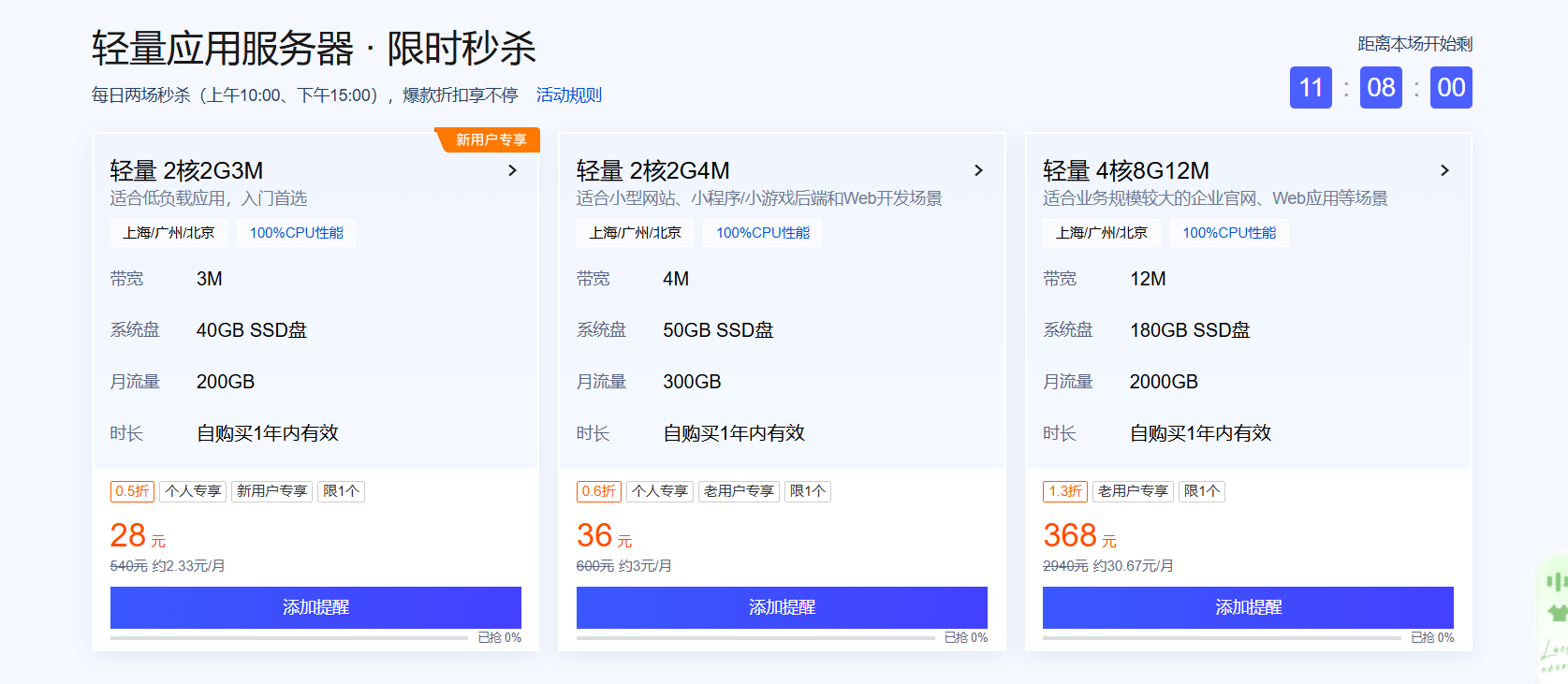 轻量应用服务器 · 限时秒杀(秒杀时间上午10:00、下午15:00两场)