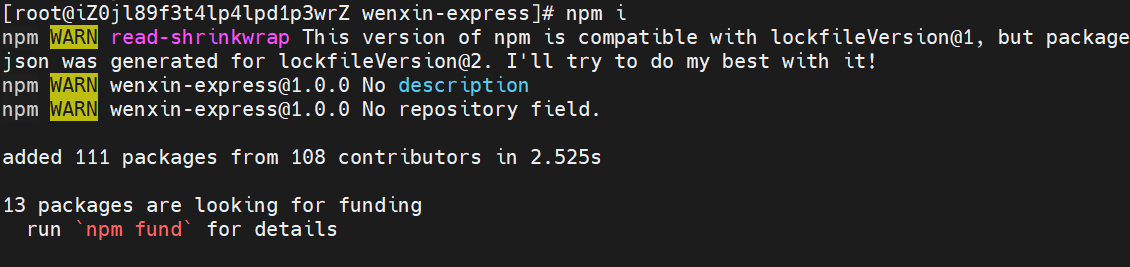 上传成功后,cd进入项目中,输入npm i安装项目依赖。