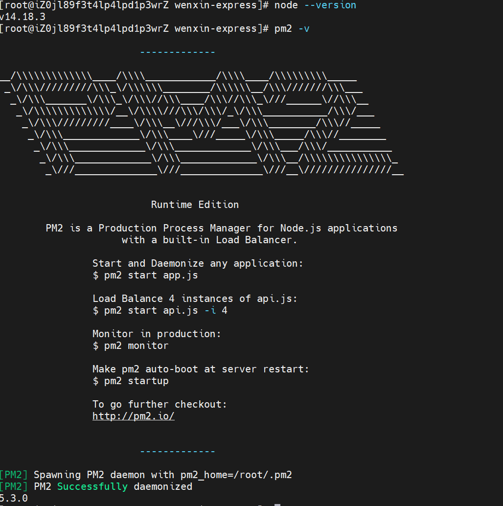 要部署Express项目,首先要保证服务器已经安装好了Node,可以输入:node --version查看node的版本: