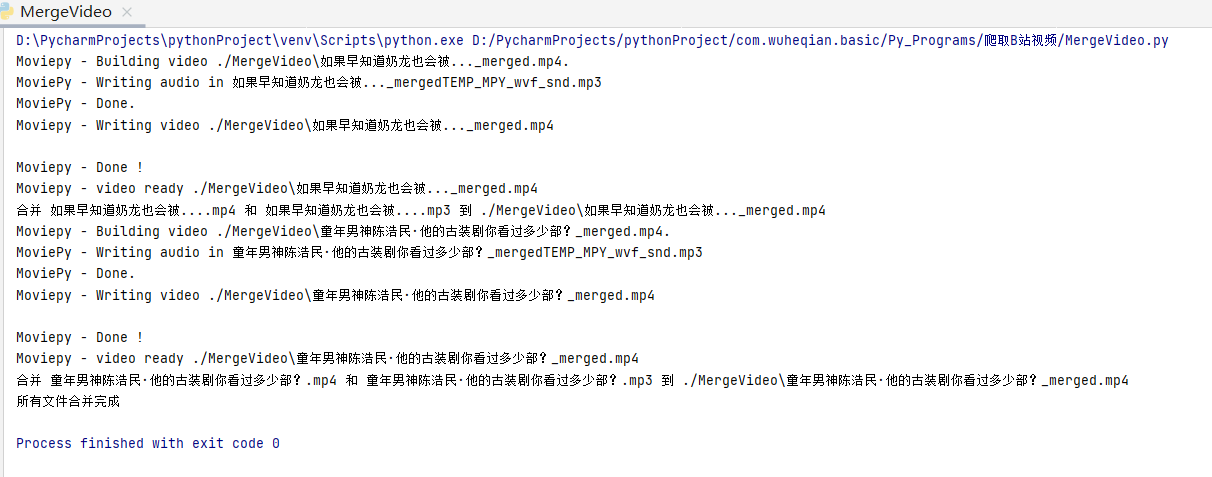 本文主要功能是批量爬取b站mp3和mp4文件,然后对这些文件进行批量合并