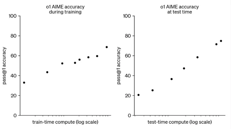OpenAI在尝试提升后训练Post-Training和推理阶段中的算力,发现整体模型的准确率有明显的提升效果。