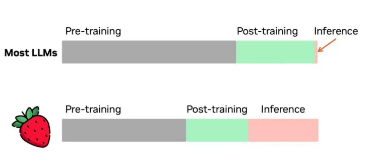 比如之前OpenAI推出的o1大模型,OpenAI就提出的新的Post-Training Scaling Laws原理。尽管在模型在预训练阶段pre-training的scaling laws真正慢慢的失效,但是在后训练阶段中的scaling laws目前还可以继续发力。