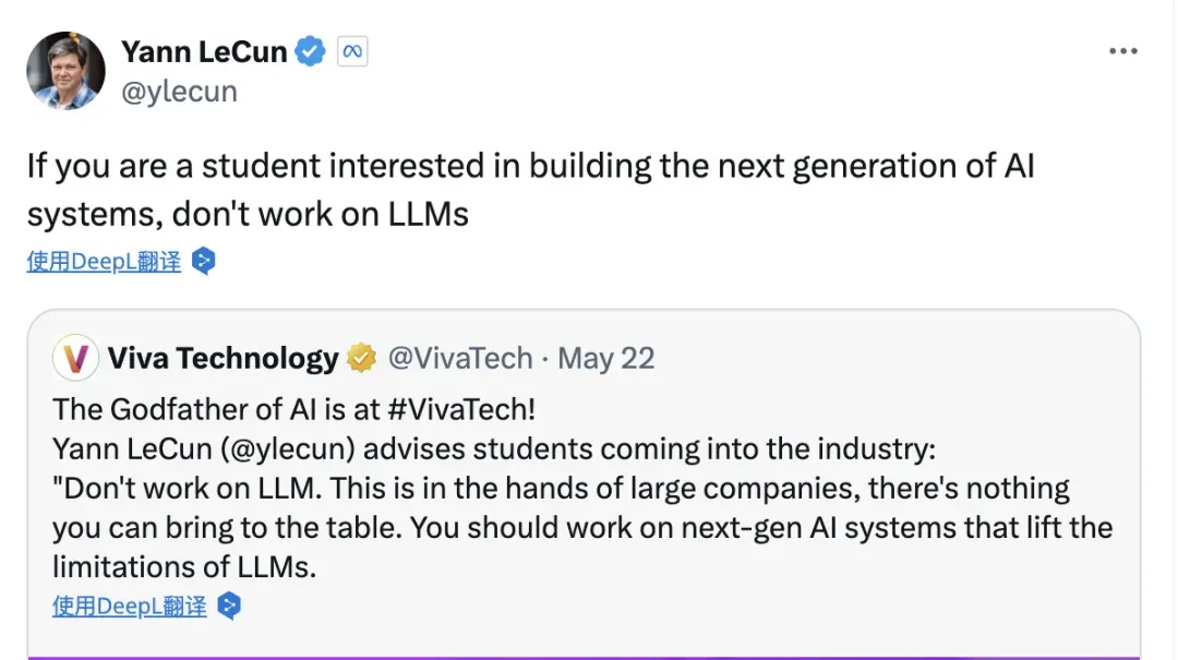 另一方面Lecun就曾提到过通向AGI的方法,就是需要构建一个“世界模型”。他觉得LLM其实就只是个自回归的文本生成模型,它们对世界的理解非常肤浅,只能捕捉到文本的统计规律,根本没法真正搞懂文本在现实世界里的意思。