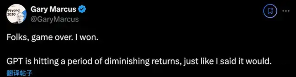 游戏结束,是我赢了。GPT大模型正在进入一个收益递减期。