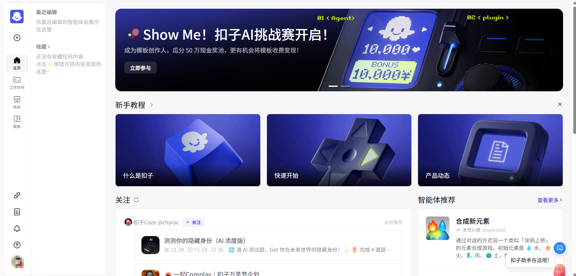 1.去注册一个“扣子”官网注册一个账号开发平台,用于创建和管理你的智能机器人。