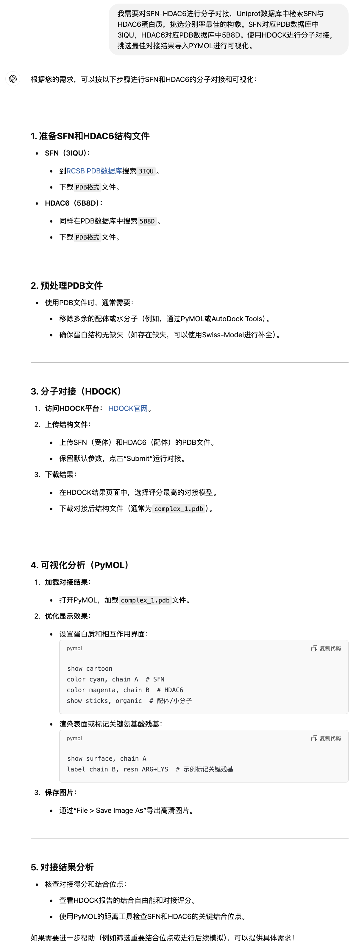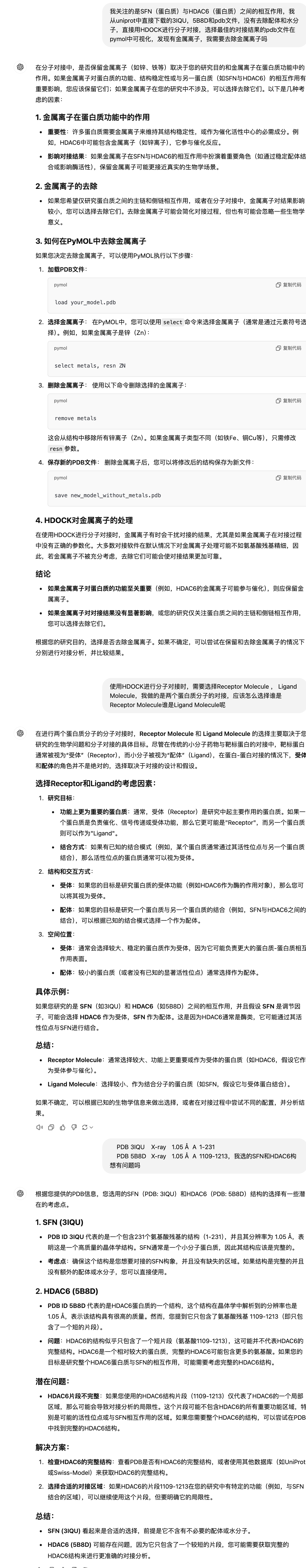 需要进行的是SFN和HDAC6两蛋白分子的对接,思路是