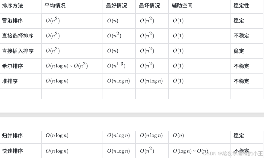 稳定性:假定在待排序的记录序列中,存在多个具有相同的关键字的记录,若经过排序,这些记录的 相对次序保持不变,即在原序列中,r[i]=r[j],且r[i]在r[j]之前,⽽在排序后的序列中,r[i]仍在r[j]之 前,则称这种排序算法是稳定的;否则称为不稳定的。