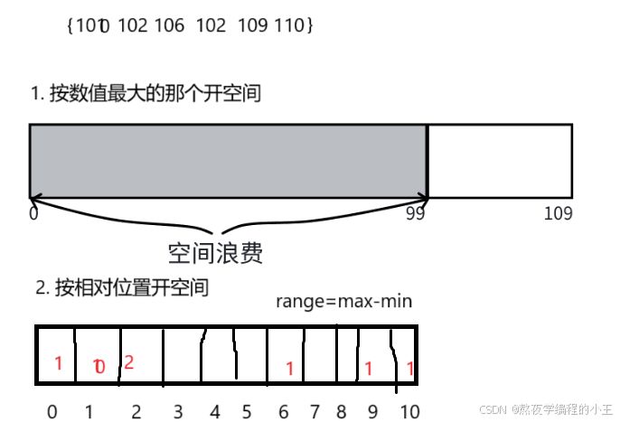 将对应下标加上min就是原始数据,数组下标对应的值出现几次就说明该数出现几次。