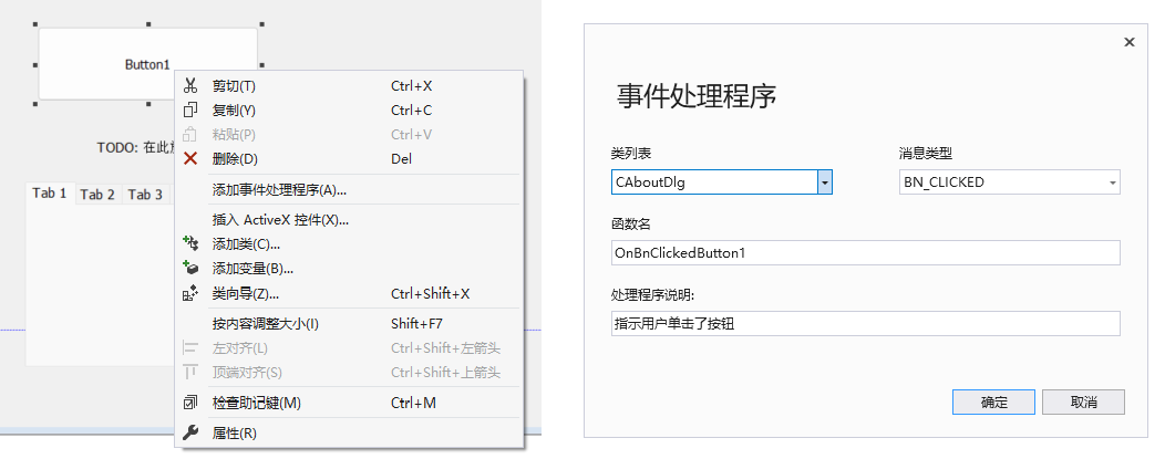 说起来很高大上,其实就是前端界面控件和后台代码命名的绑定。当前端控件执行某些操作时,需要把这个事件或消息映射到MFC的成员类上。通过这种方式让后台代码可以响应前端事件和消息,完成指定操作。
