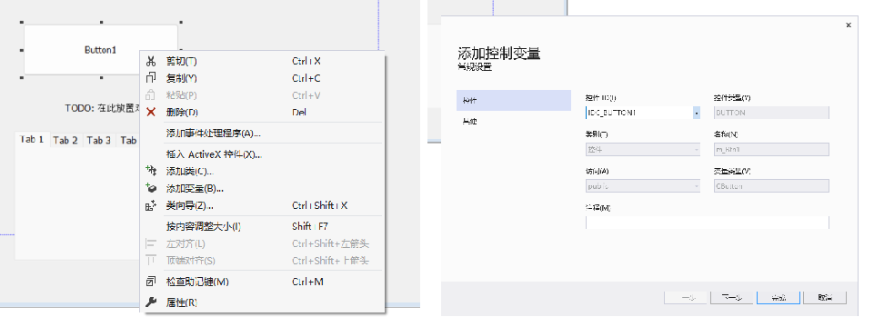 首先,我在界面上放置了一个按钮和Tab控件。后端如何知道前端控件的呢?