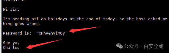 根据这个邮件我们找到关键的地方就是charles这个用户告诉了jim他的用户密码,也就是说我们可以登录这个用户