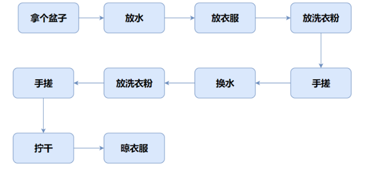 就拿洗衣服举例:洗好衣服要经过下面几个过程