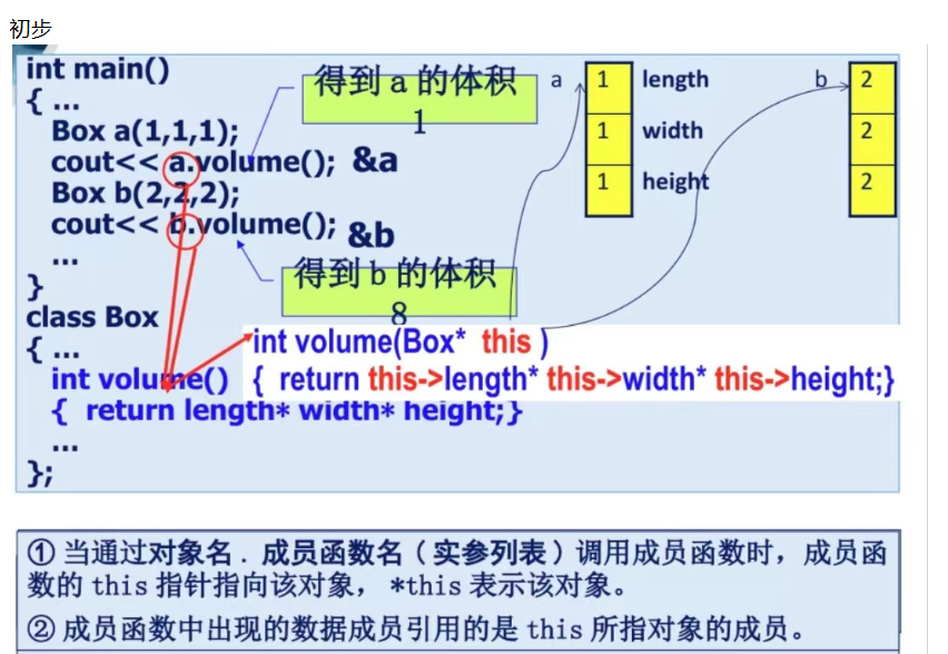(3)本质:非静态成员函数"的形参,当对象调用“成员函数"时将对象地址作实参传给形参this,所以对象中不存储this指针