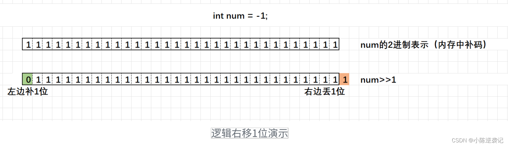 1. 逻辑右移:左边⽤0填充,右边丢弃