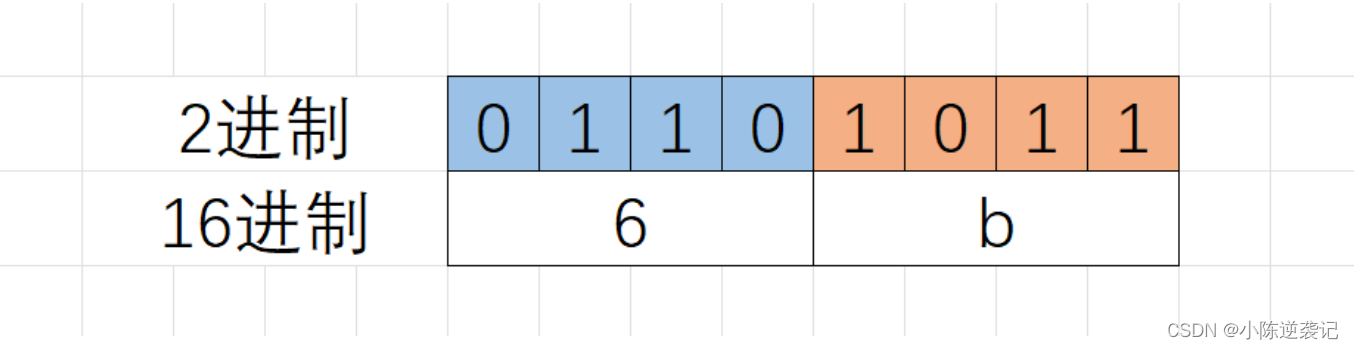 16进制的数字每⼀位是0~9,a ~f 的,0~9,a ~f的数字,各⾃写成2进制,最多有4个2进制位就⾜够了, ⽐如 f 的⼆进制是1111,所以在2进制转16进制数的时候,从2进制序列中右边低位开始向左每4个2进 制位会换算⼀个16进制位,剩余不够4个⼆进制位的直接换算。