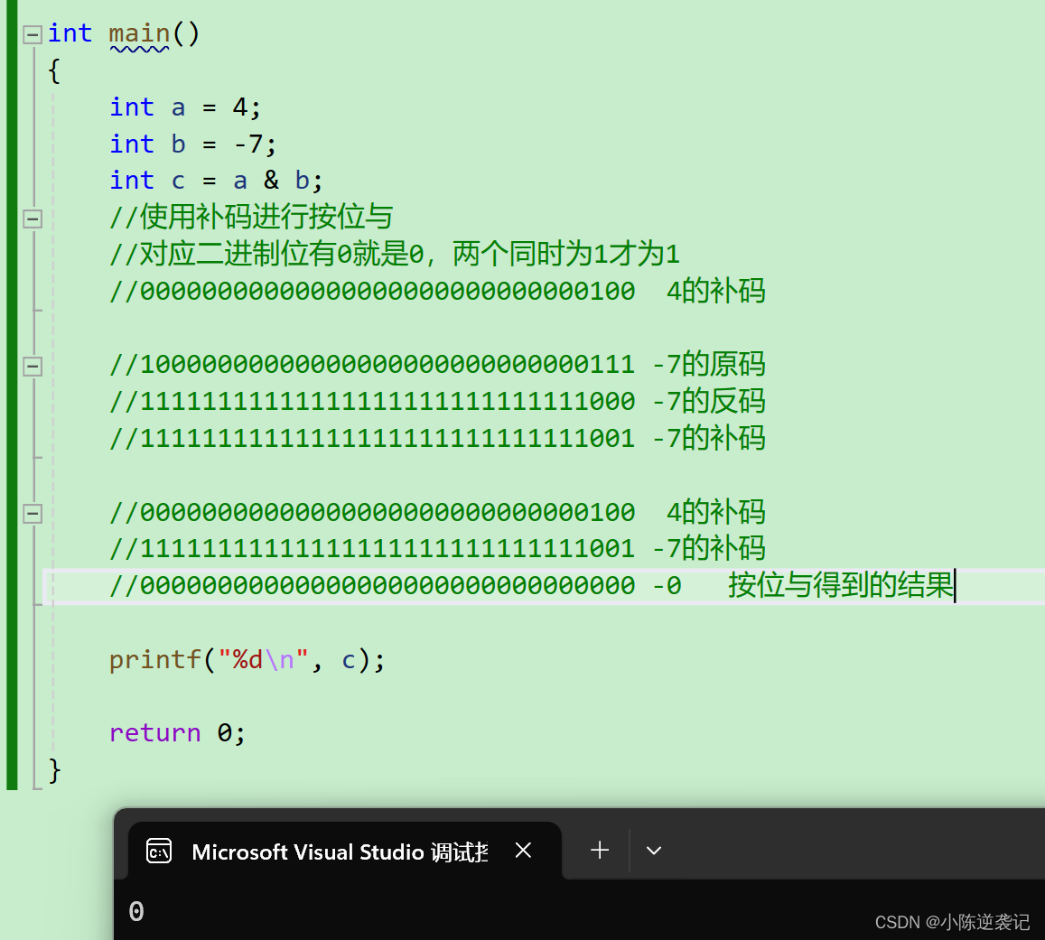 //00000000000000000000000000000000 按位与得到的结果就是0(正整数的原、反、补码都相同)