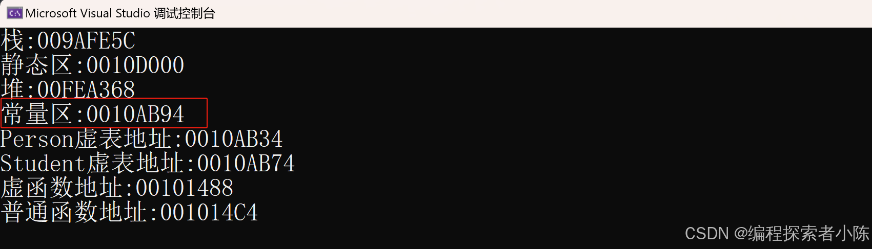 可以看到虚表是存放在常量区的