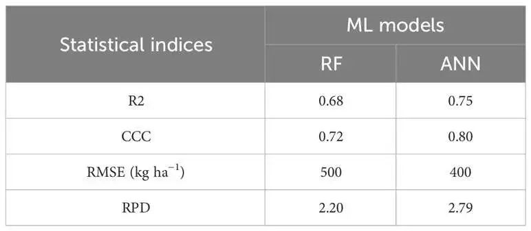 RF和ANN模型应用于实际WY预测的模型预测性能统计。