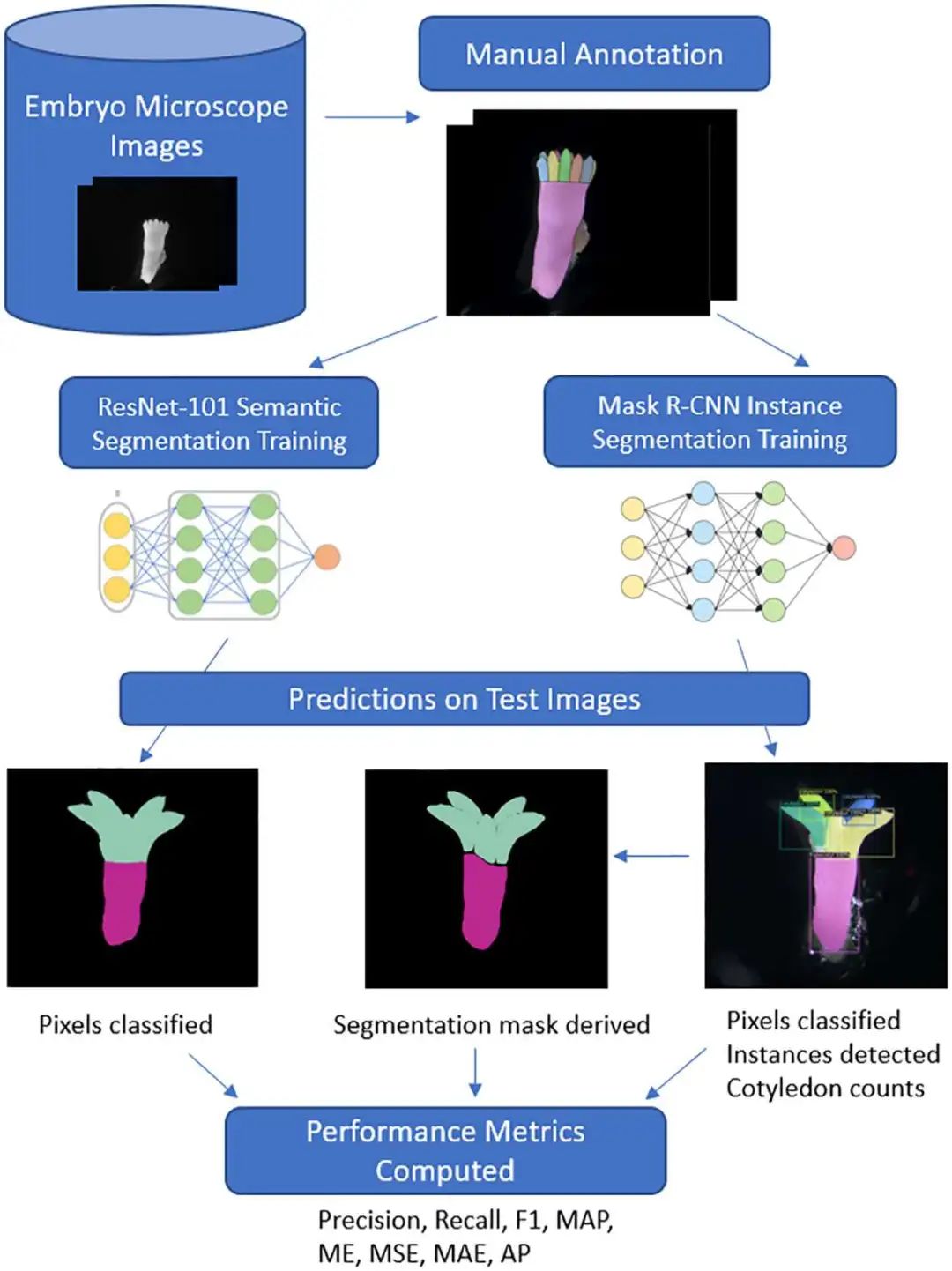 松树体细胞胚分割的深度学习工作流程。