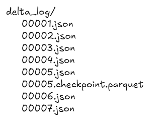 图 2.表扫描只需要读取日志的三个元数据文件:00005.checkpoint.parquet、00006.json 和 00007.json。