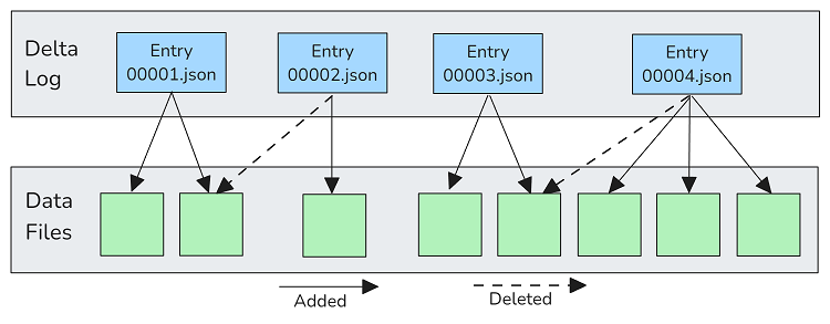 增量日志方法包括将新更改写入日志条目,这些日志条目仅引用已更改的内容,例如添加和删除的文件、对架构的更改等。