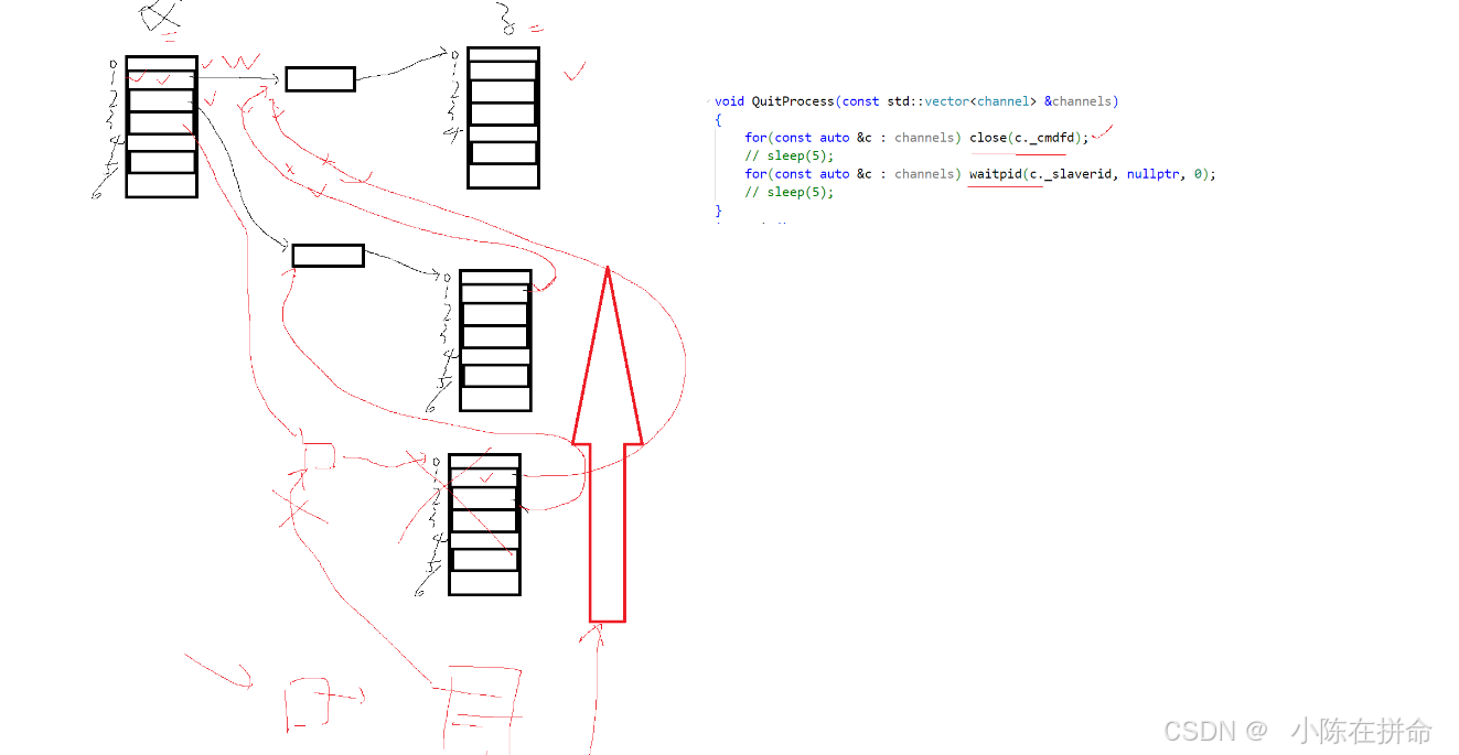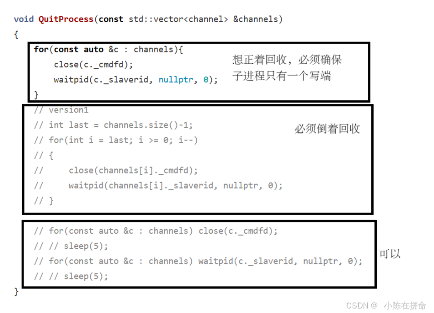 解决方案2:两个循环(先把所有写端关闭了再一起回收)