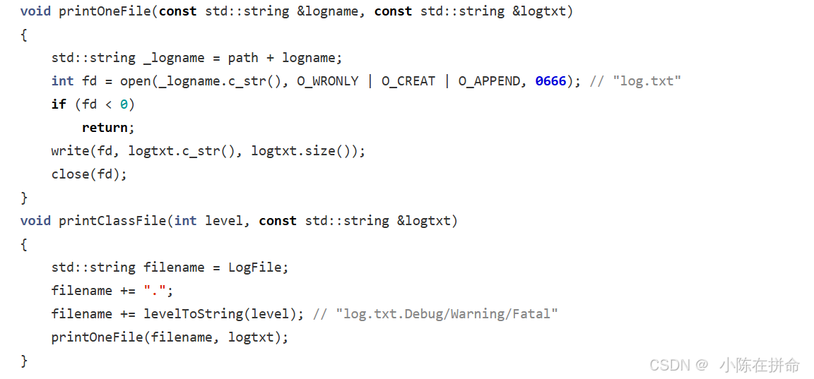 int fd = open(_logname.c_str(), O_WRONLY | O_CREAT | O_APPEND, 0666); // "log.txt"