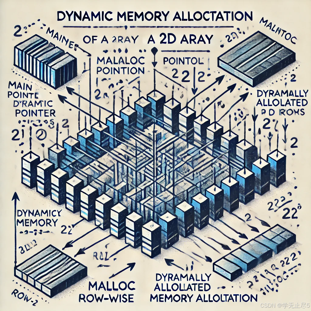 matrix 指向一个包含 rows 个指针的数组。内存泄漏是指分配的内存未被释放,导致系统资源浪费。
