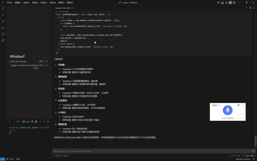 发言人 01:22 我们可以对比一下 Supabase 与传统后端实现的区别: