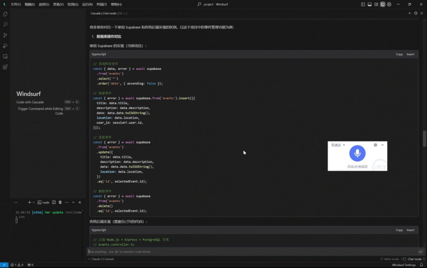 发言人 02:02 由于 AI 能理解业务需求,你可以使用 AI 技术更快速开发,从而专注于创造性的业务逻辑。 我们可以将需要添加 Supabase 的需求提示词输给 AI,这里我们加快一下演示进度。