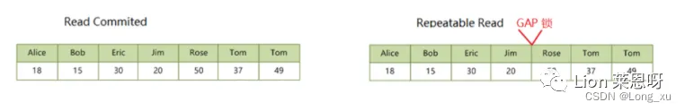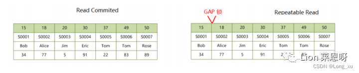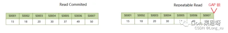 (2)Gap Lock,间隙锁,锁定一个范围,但不包含记录本身;全开区间。REPEATABLE READ 级别及以上支持间隙锁;如果 REPEATABLE READ 修改innodb_locks_unsafe_for_binlog = 0,那么隔离级别相当于退化为 READ COMMITTED。