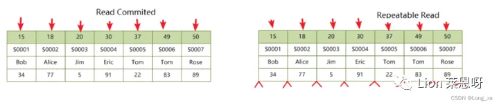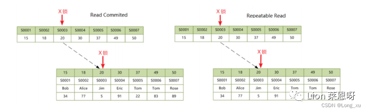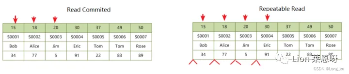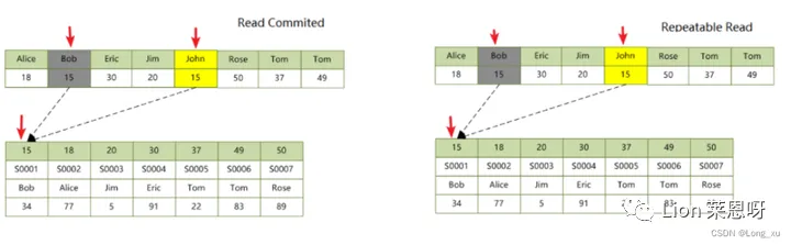 (2)而在 repeatable read 隔离级别下,对于快照数据总是读取事务开始时的"行"数据版本。