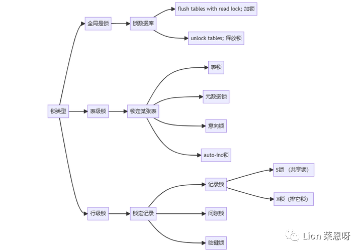 (1)全局锁:锁住数据库,用于全库备份。使用 flush tables with read lock命令使整个数据库处于只读状态;使用unlock tables释放锁。