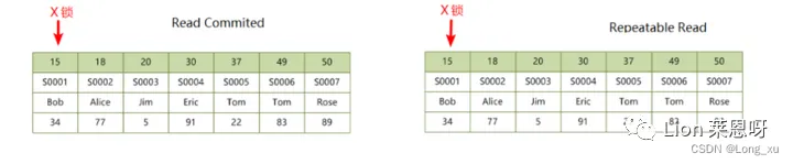 READ COMMITED 隔离级别会全表加排他锁进行扫描;REPEATABLE READ隔离级别除了会全表加排他锁进行扫描外,还会加gap 锁。