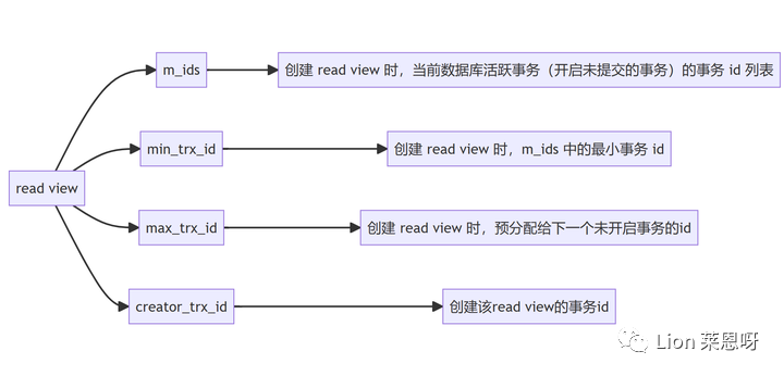 (4)creator_trx_id:创建 read view 所在事务的 id。