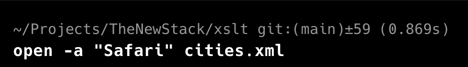 如果我直接在Chrome中打开cities.xml,我会看到如下内容,这或多或少是预期的: