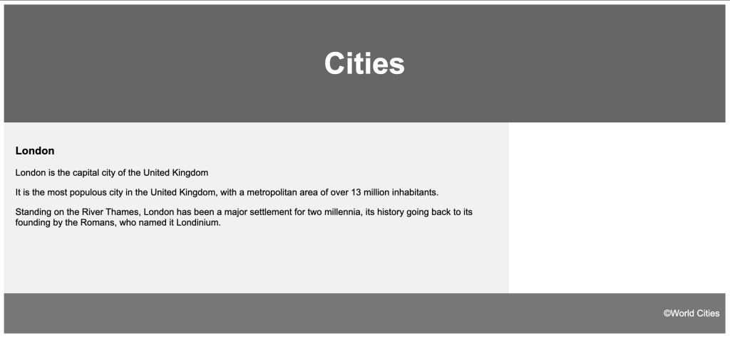 这个查看器来自w3schools网站,cities.html文件改编自那里的示例。缺少的顶部部分只是CSS,我稍后会展示。但我们有一个简单的页面。