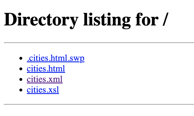 ……通过在localhost:8000处打开浏览器,您可以导航到cities.xml文件并获得页面,就像它一样: