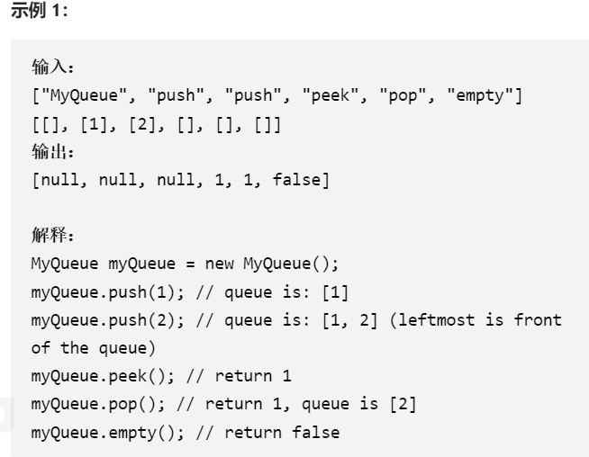 }题目链接:https://leetcode.cn/problems/implement-queue-using-stacks/ 请你仅使用两个栈实现先入先出队列。队列应当支持一般队列支持的所有操作(push、pop、peek、empty):