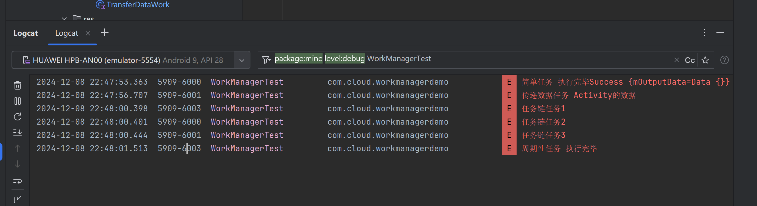 Log.e("传递数据任务", outputData.getString("data")!!)
