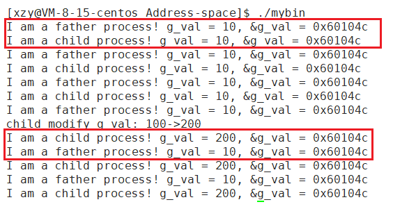 但是,根据我们看到的现象,发现子进程在修改了val 的值时,地址并未发生变化,Linux可以用一个变量表示不同的值,但是肯定不能,用一块地址存下两个值。