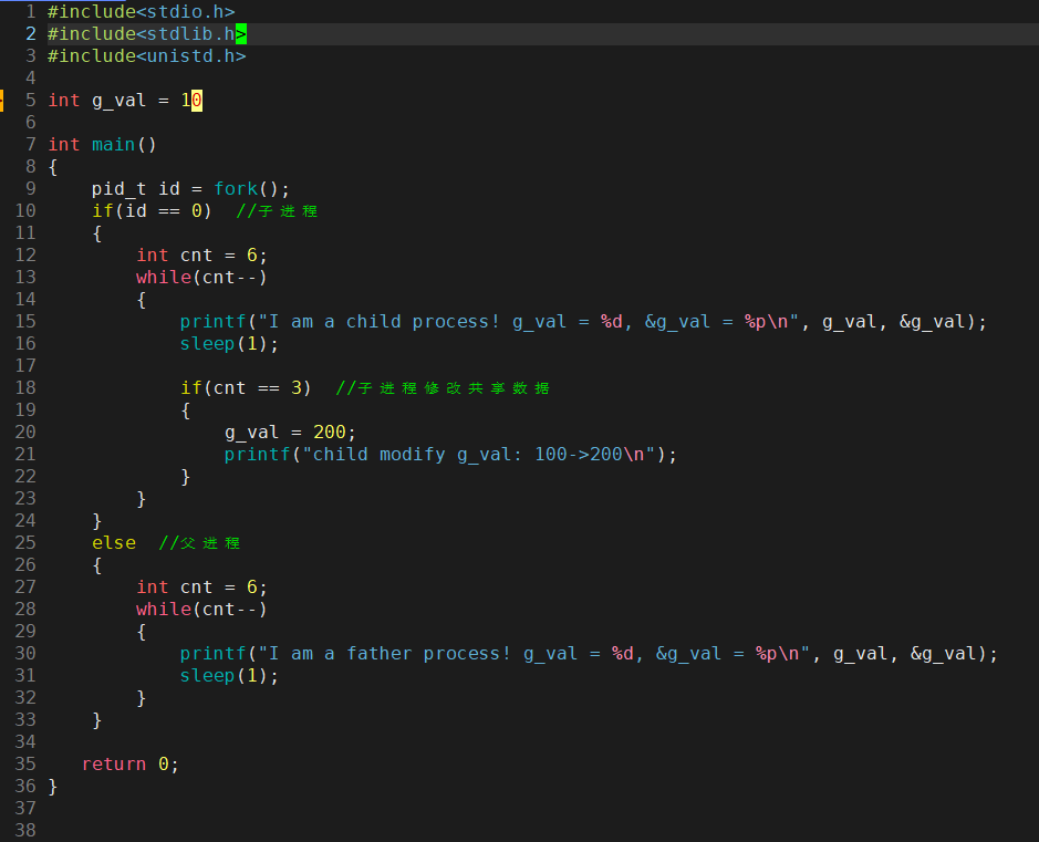 所以说,子进程和父进程的val值虚拟地址虽然相同,但是,由于页表上的对应关系不同,让他们指向了两个不同的物理地址,这样他们的值就产生了不同。
