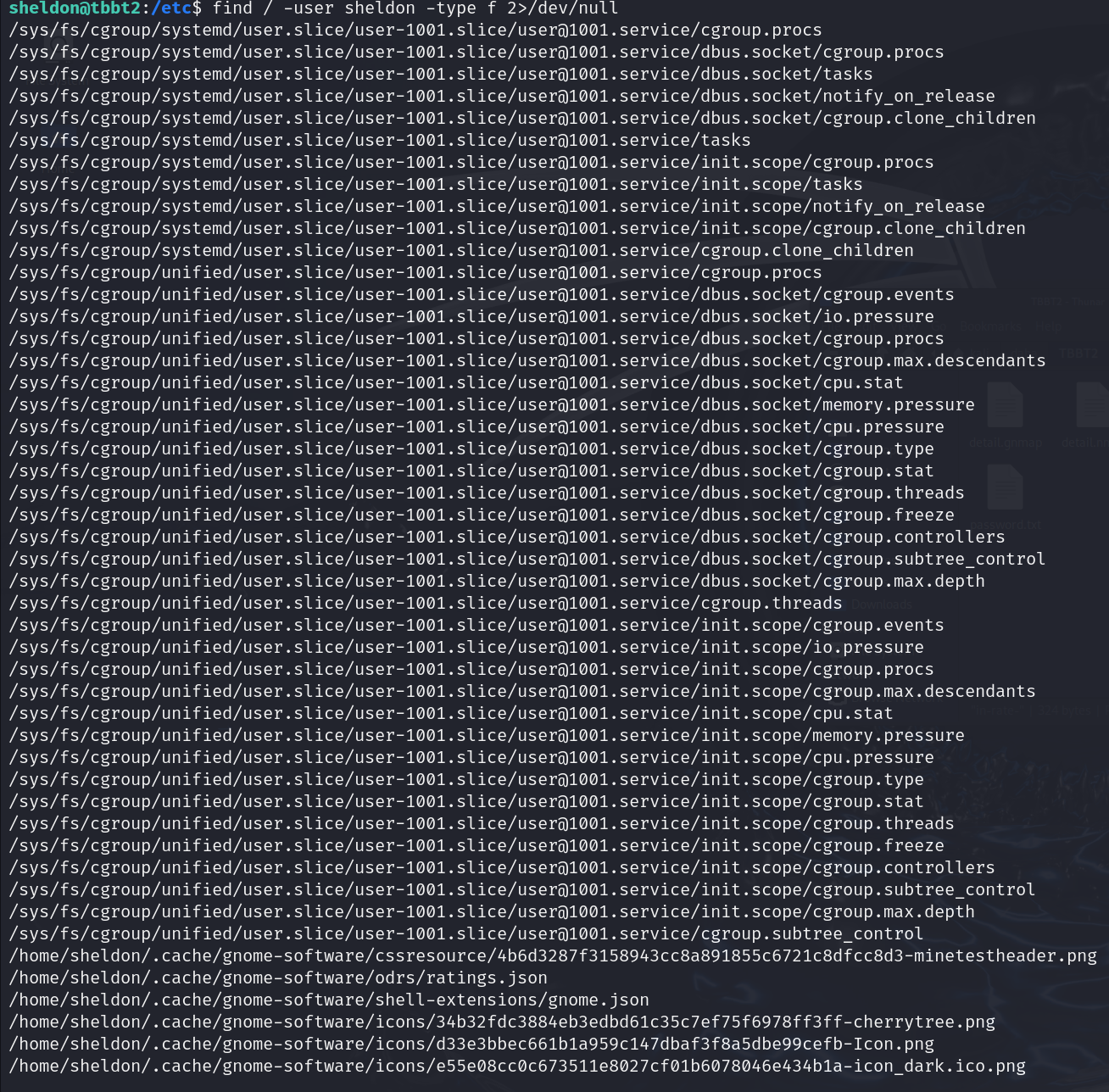 用find命令找属于sheldon和suid的文件