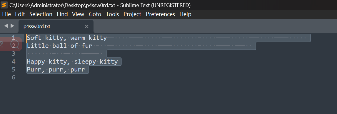 把他提示的txt下载下来,全部选择的时候明显多了点东西,更换打开器sublime可以看到有点点和横线。