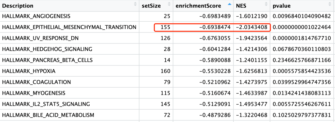 可以看到,确实是文章这样的EMT基因列表是下调的:
